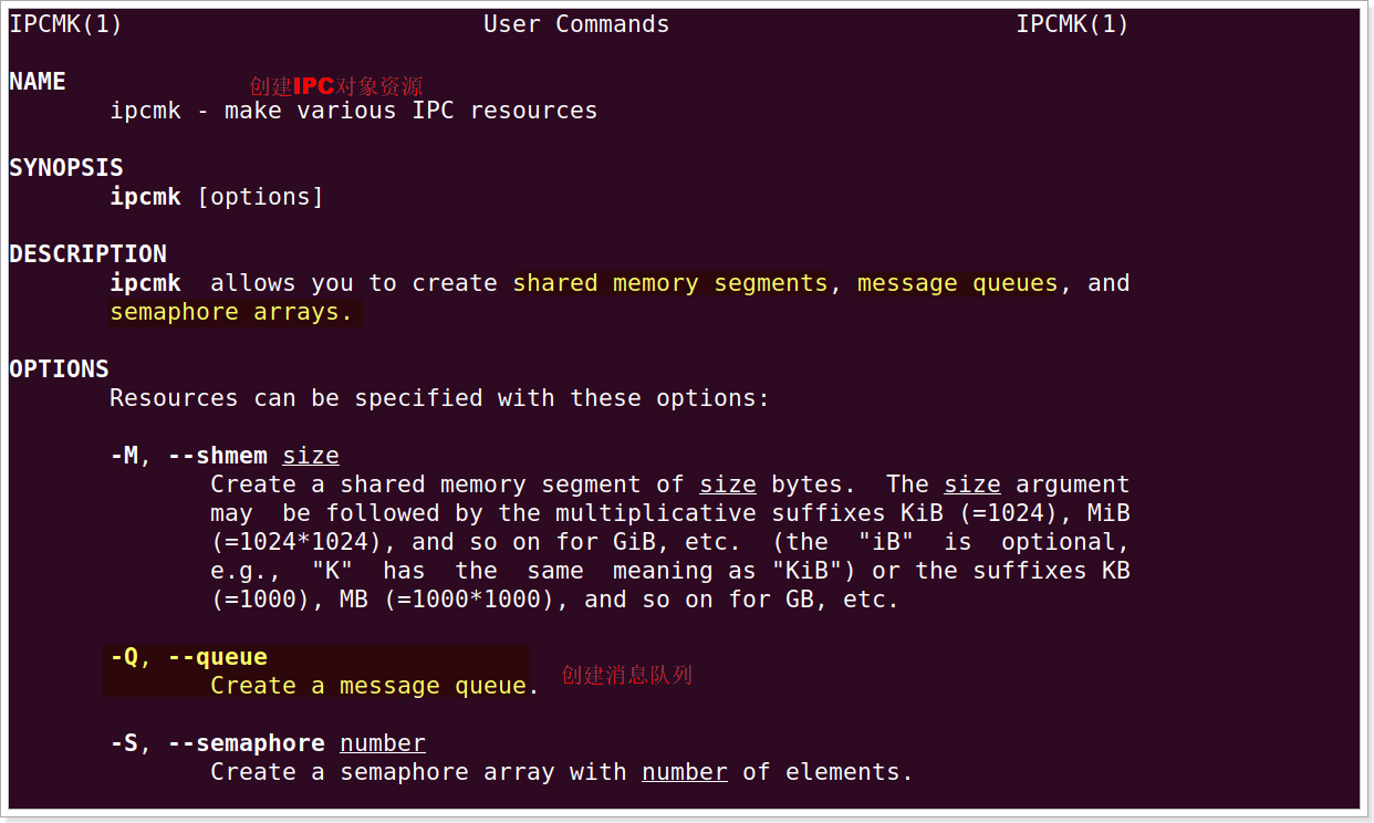 该命令用于快速创建IPC对象,创建消息队列的语法如下: