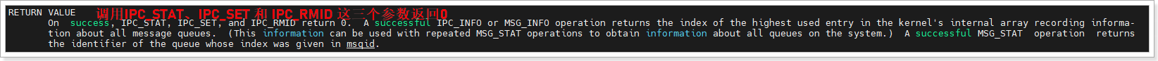 - MSG_NOERROR:如果消息正文长度大于msgsz,截断消息,只接收msgsz字节,不报错(否则返回-1)。